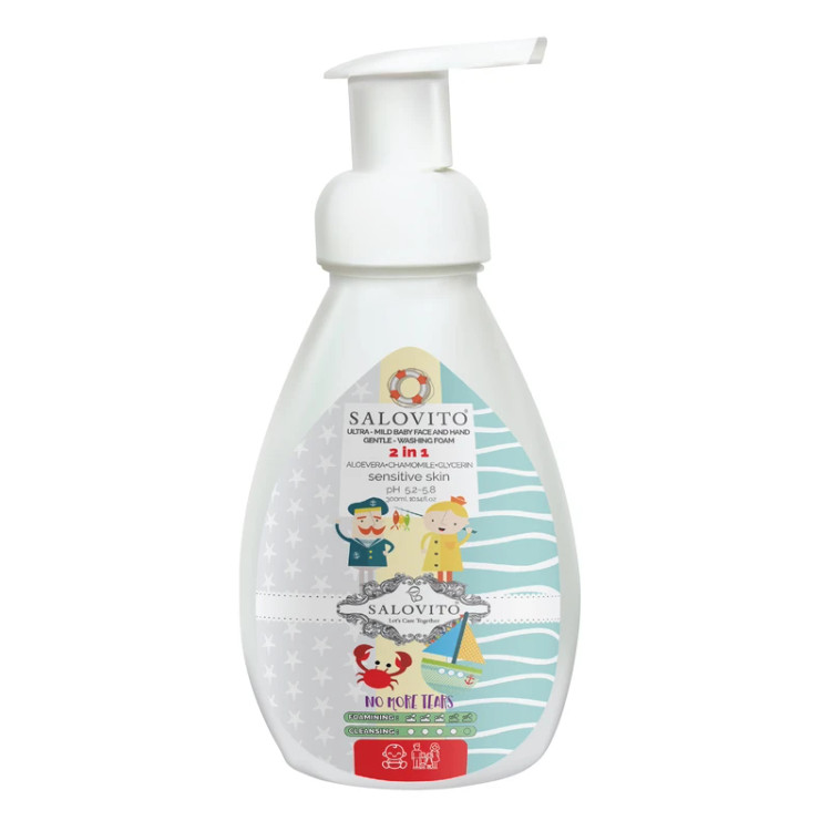 فوم بسیار ملایم صورت و دست سالوویتو بر مبنای پوست بسیار حساس نوزادان و کودکان و قوانین سخت گیرانه اتحادیه اروپا در مورد محصولات کودک طراحی شده و با ساختاری بدون سولفات،بدون پارابن ،بدون سدیم کلراید،بدون عطر ،بدون مواد صابونی و بدون اس ال اس و اس ال ای اس مناسب شستشوی روزانه تمام سنین از بدوتولد میباشد.عصاره بابونه و آلوئه ورا خالص استفاده شده در فوم بسیار ملایم صورت و دست سالوویتو موجب بازسازی وترمیم التهابات پوستی میگردد.این محصول با داشتن pHمتعادل شده 5.5 سبب حفظ شرایط فیزیولوژیک پوست میگردد.این محصول برای تمام افراد با پوستهای حساس ،بعد از عمل های زیبائی و شستشوی روزانه آرایش توصیه میگردد.